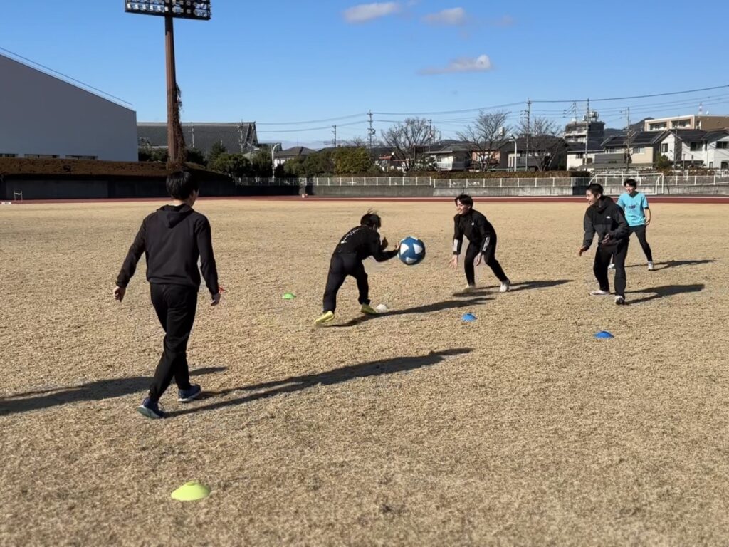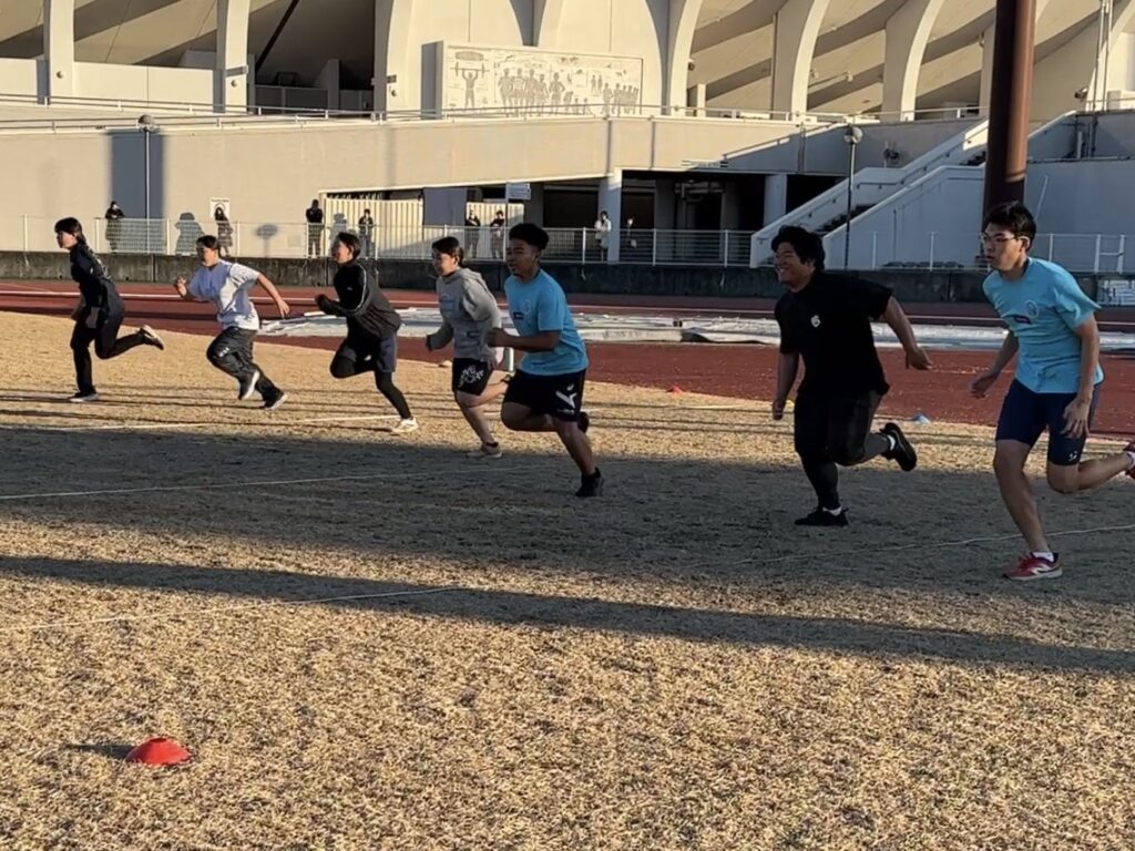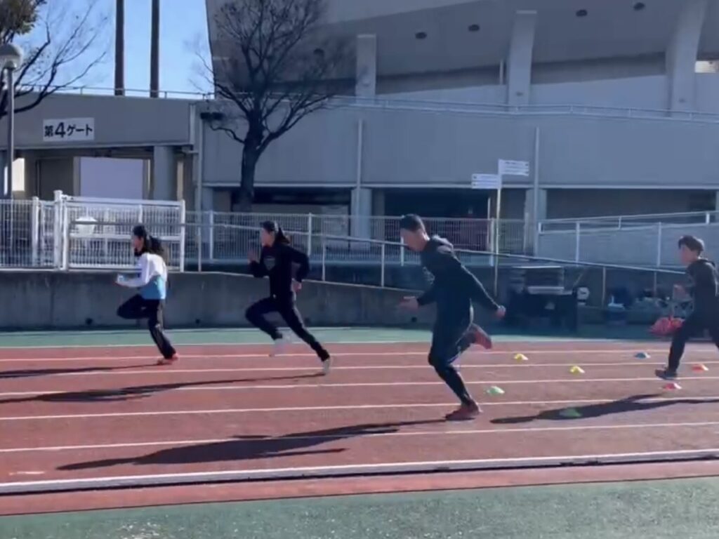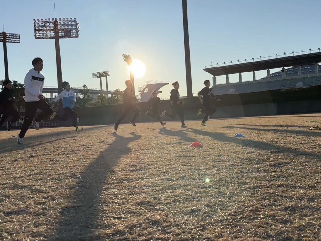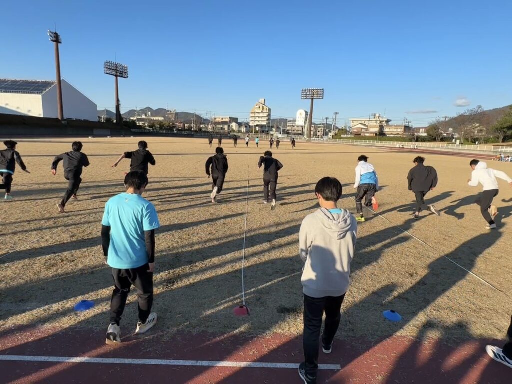 ステップ台、ラダー、縄跳び、メディシン投げ、反発マットといった定番トレーニングはもちろん、毎年恒例となった「中コーチから逃げろ」もあります。