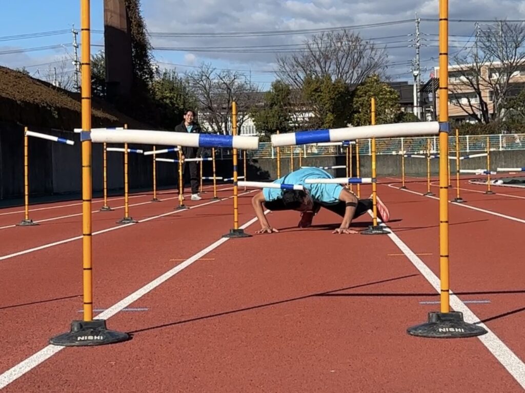 バーに触れたらスタートに戻るハードル走では、あえてハードルをくぐろうとする強者も現れました。