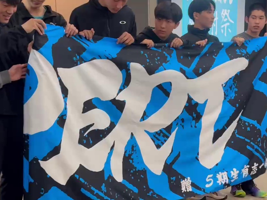 最後には卒業する3年生の有志の方から寄贈いただいた新たな横断幕を披露しました。