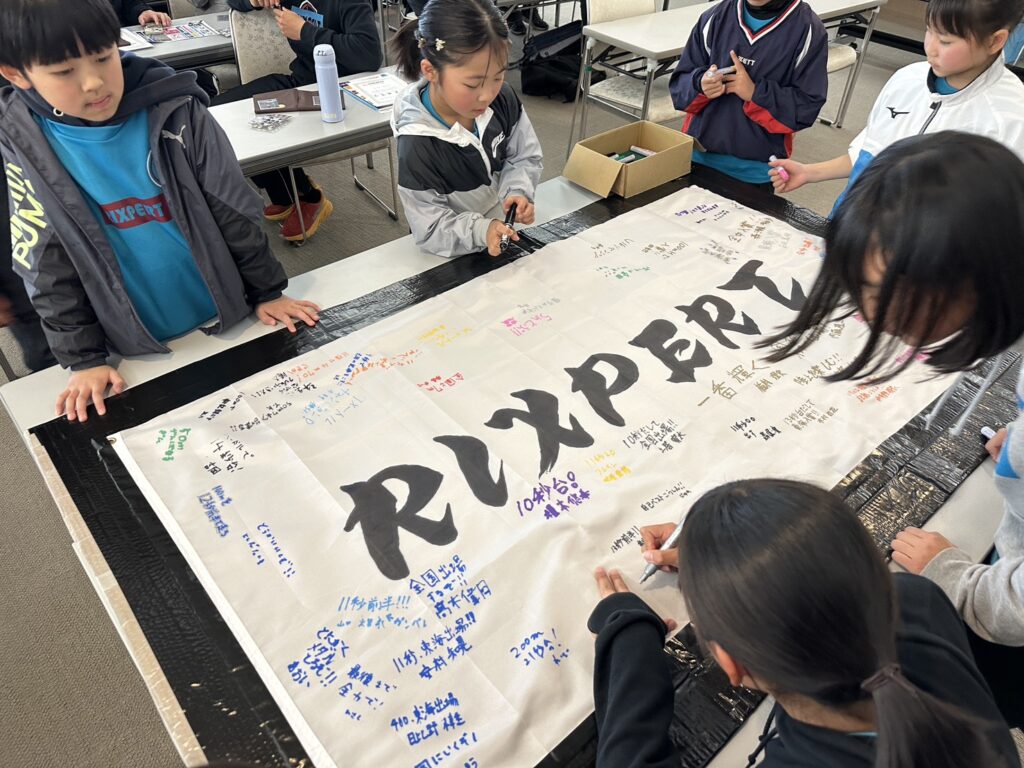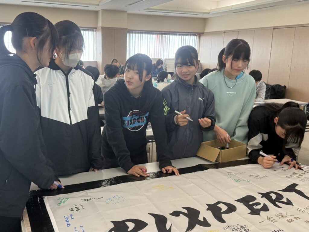 今年は新たな試みとして株式会社ヒマラヤ様から協賛をいただくことができ、開始までの待ち時間ではアンケートに答えてもらったり、みんなで作る横断幕に今年の目標を記入して時間を過ごしました。
