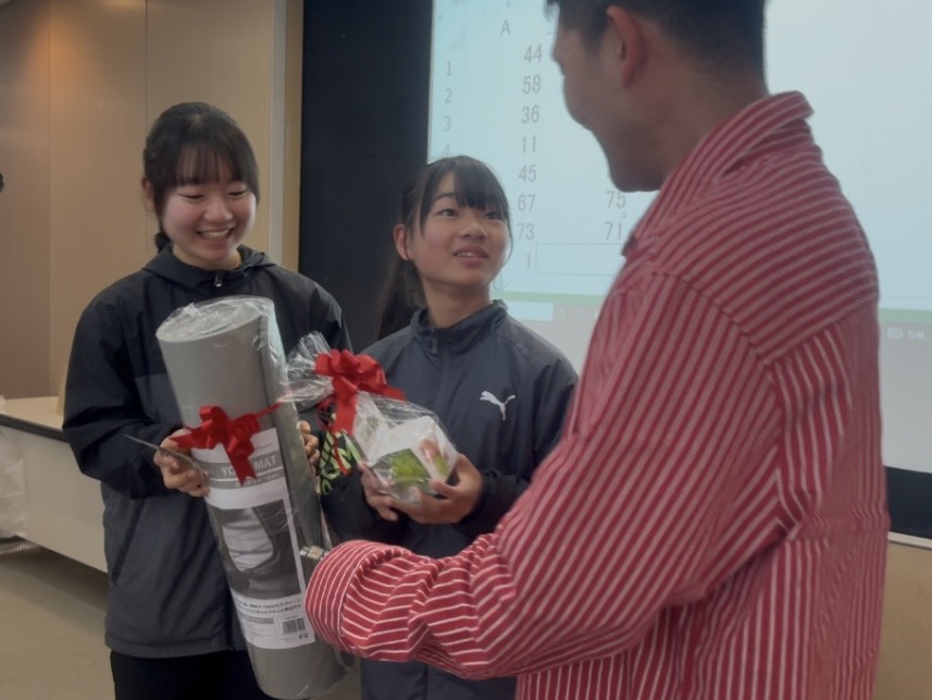 それぞれのコーチから景品が渡され、中身が紹介されました。いずれもケア、栄養に気を使った景品となります。