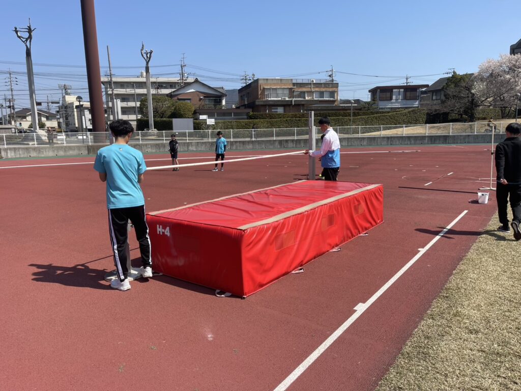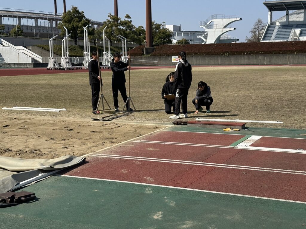 走高跳は支柱の高さが最低で1mとなってしまうため、普段の活動で使用しているパイプ測定器も使用しての測定となりました。