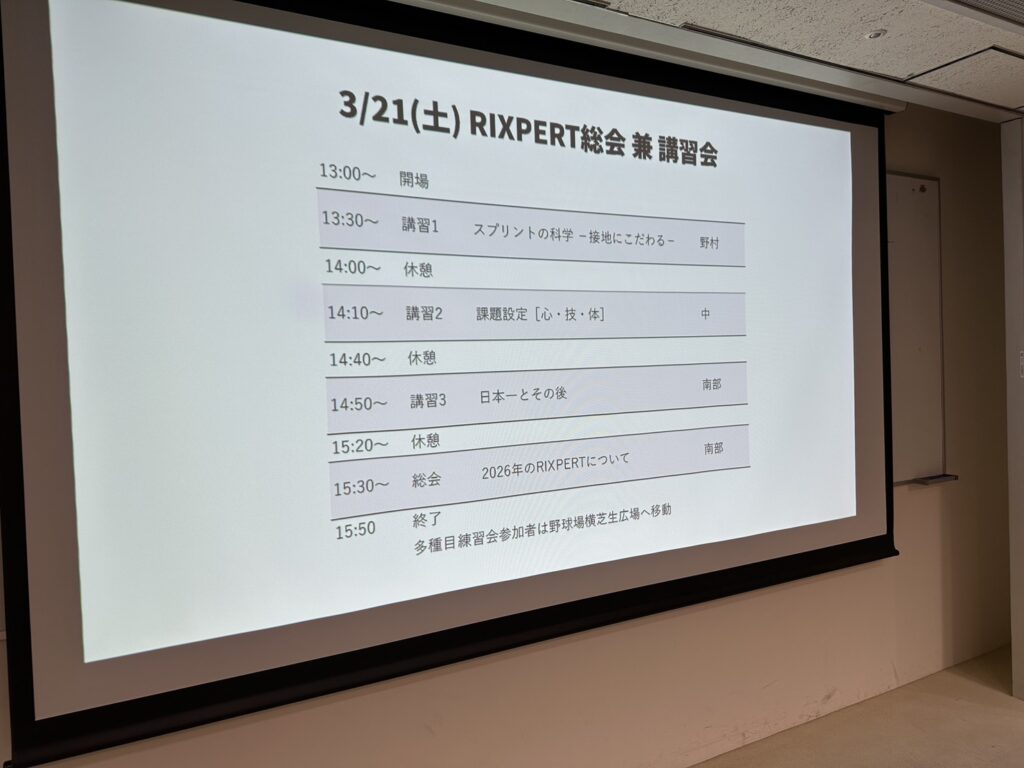 それぞれのコーチによる30分の講義と、最後にはRIX総会として2026年に向けたRIXPERTの方針説明となります。
