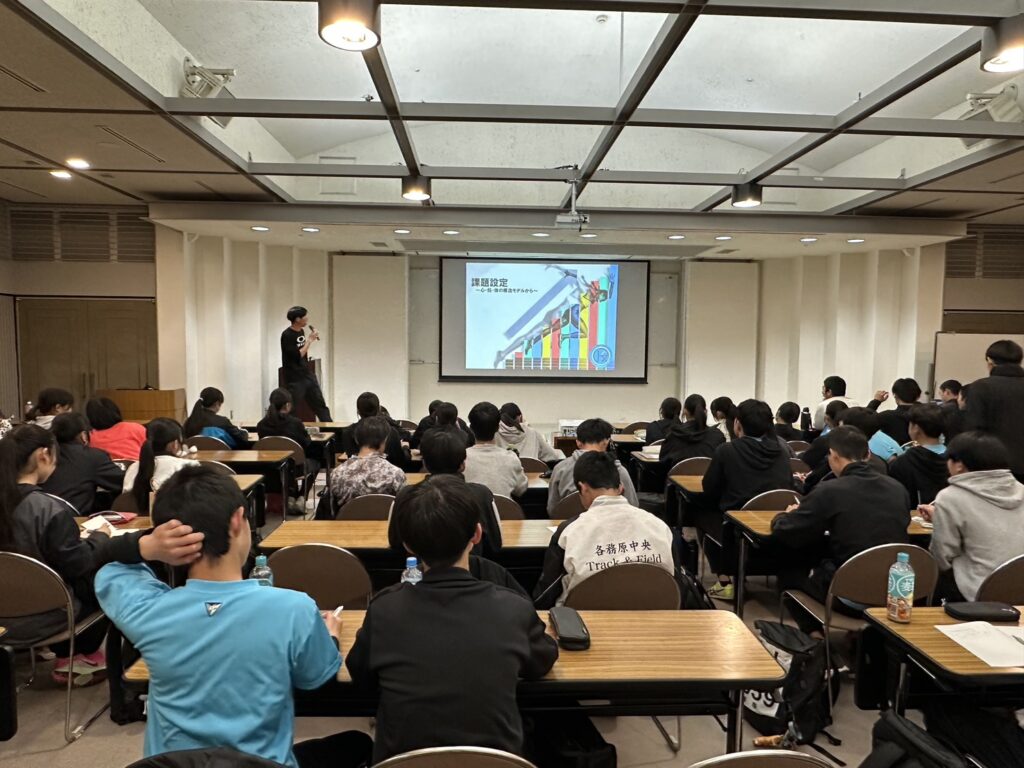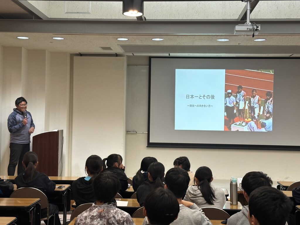 トリを飾る南部コーチは「日本一とその後 競技との向かい方」として、自身の競技経験をもとに、今の中学生に伝えたい熱いメッセージが込められた講義となりました。