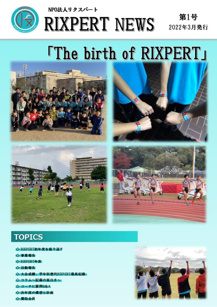 設立1年目から通信陸上の1~3年生100m決勝には計10名が残る快進撃を見せ、東海大会でも入賞者を輩出しました。RIXPERTからの大会出場を果たし、RIXバンドで結束力を高め、砂浜練習や年納め練習、金華山登山と今も続く行事がスタートしたのもこの年です。今に続くRIXPERTの文化と絆がこの時、確かに築かれ始めました。