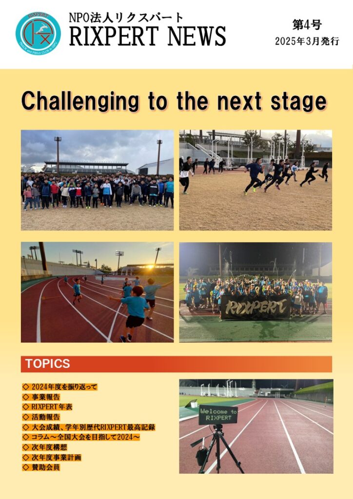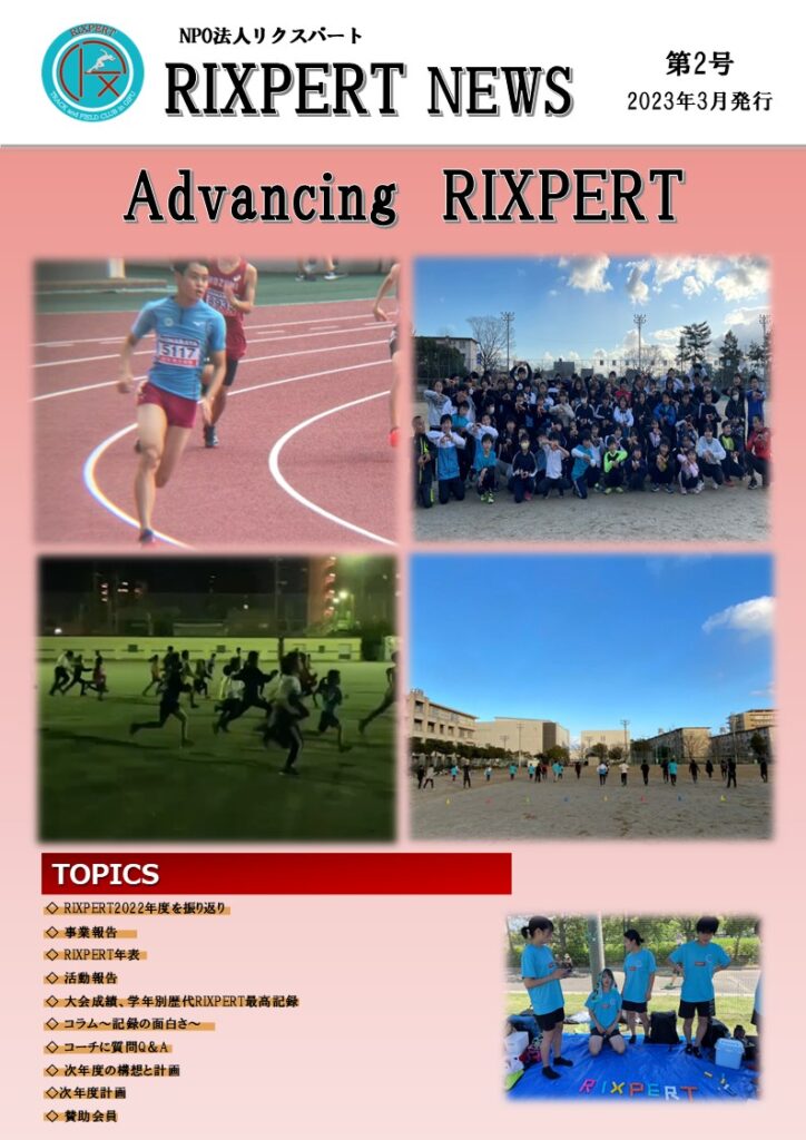 運営面では、会員証の導入による通称「チャリーン」がスタートし、それに合わせラッキーチャンスやオンライン決済も導入されました。50mチャレンジへではLED電光掲示板を導入し、秋の多種目挑戦会のフォーマットも完成するなど、指導の質もさらに磨かれました。規模の拡大に伴い、ふれあい会館へと会場を移した「RIX感謝祭」は過去最大の盛り上がりを見せ、RIXPERTは名実ともに岐阜県を代表する陸上クラブの一つへと登りつめました。